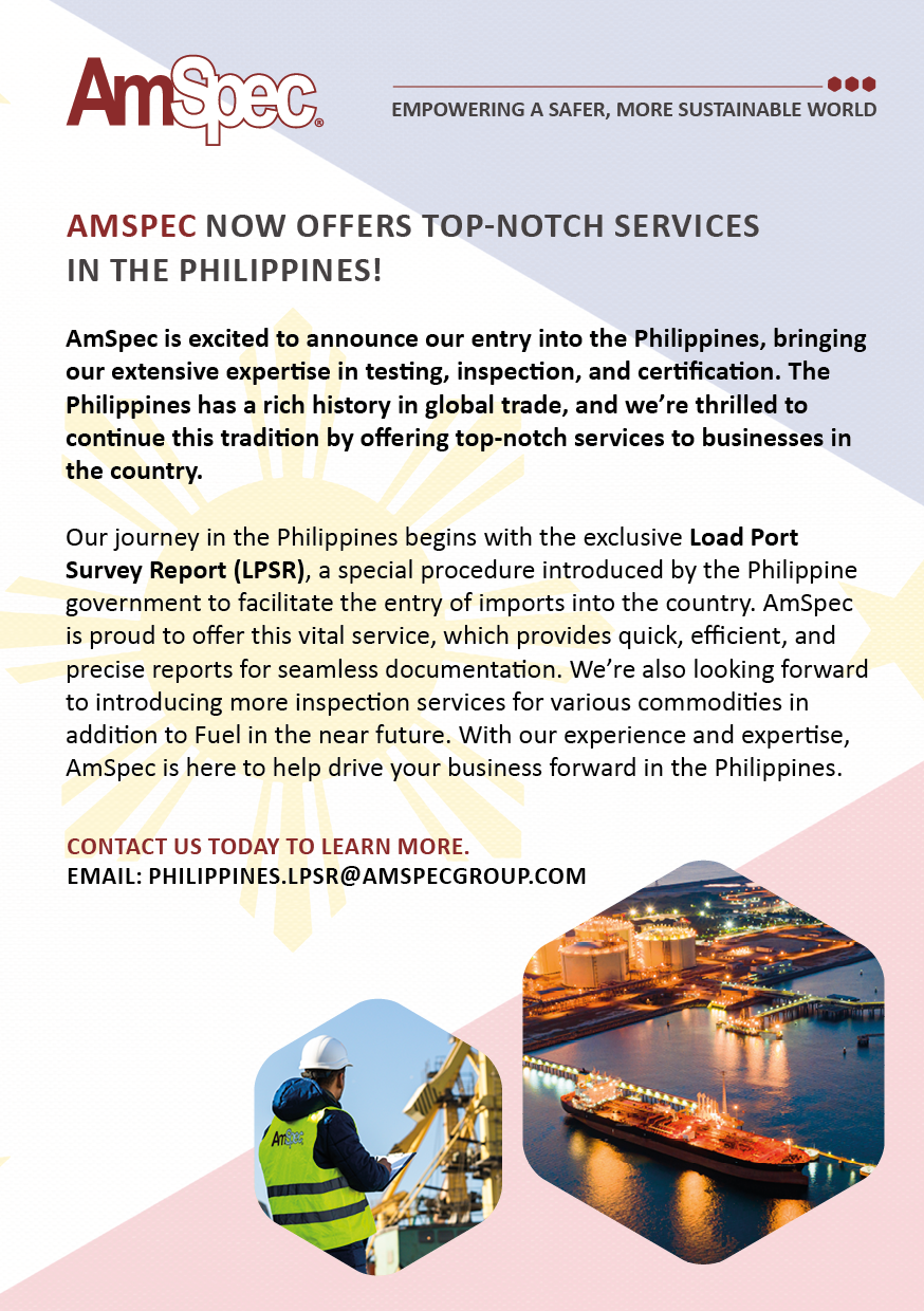 Our journey in the Philippines begins with the exclusive Load Port Survey Report (LPSR), a special procedure introduced by the Philippine government to facilitate the entry of imports into the country. AmSpec is proud to offer this vital service, which provides quick, efficient, and precise reports for seamless documentation. We're also looking forward to introducing more inspection services for various commodities in addition to Fuel in the near future. With our experience and expertise, AmSpec is here to help drive our customers' business forward in the Philippines. Please get in touch with our local team if you have any questions at philippines.lpsr@amspecgroup.com.